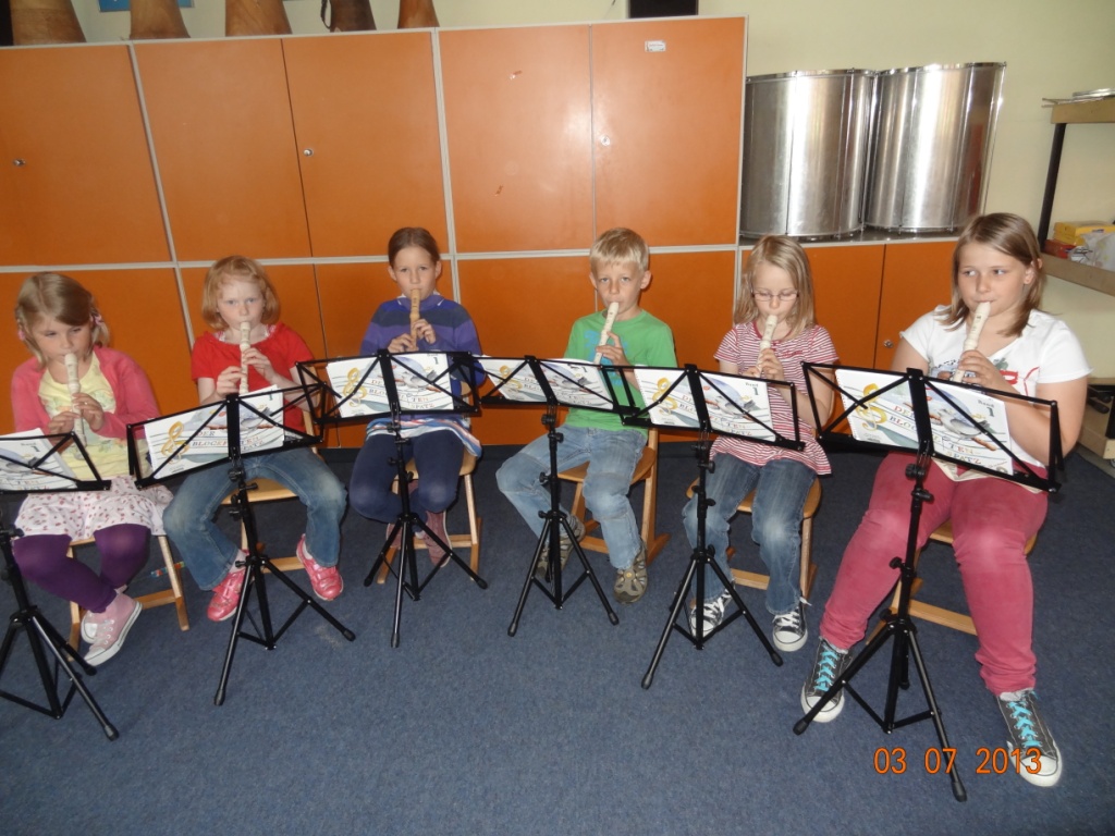 Der jetzige Flötenkurs ist aber noch nicht abgeschlossen – er läuft noch ein Jahr weiter mit dem Ziel, dass Spielen von kleinen Liedern auf der Flöte sowie die musiktheoretischen Grundbegriffe (Noten, Taktarten, Rhythmus, etc.) zu vermitteln.