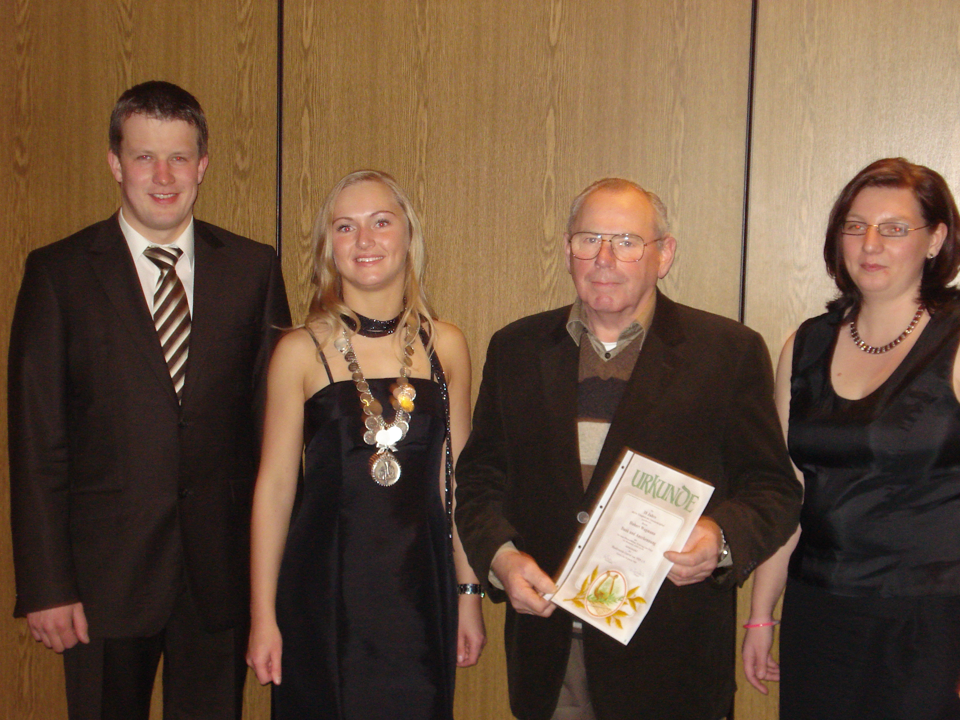 Nach einem reichhaltigen Abendessen stand eine Ehrung auf dem Programm: Hubert Wegmann wurde hierbei für 10-jährige Mitgliedschaft mit einer Urkunde ausgezeichnet. In seiner Laudatio ging Günther Meyer ausführlich auf die Verdienste von Hubert Wegmann, der im Musikverein u.a. als Busfahrer fungiert, ein. Am Ende gratulierten alle Anwesenden mit einem „Standing Ovation“.