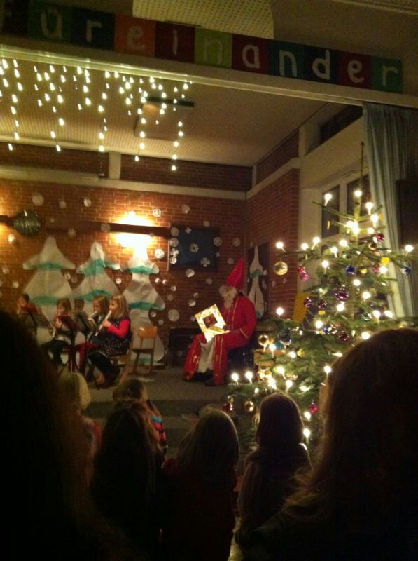 Dabei wurde den Erwachsenen ein Bild von der musikalischen Vielfalt der „Kleinen“ dargeboten. Mal wurde dabei gesungen, mal getrommelt, mal hörte man den Klanggeschichten oder Gedichten zu und natürlich präsentierten sich auch die beiden Flötengruppen mit diversen Liedern. Natürlich stattete auch der Nikolaus einen Besuch ab und verteilte reichlich Geschenke.