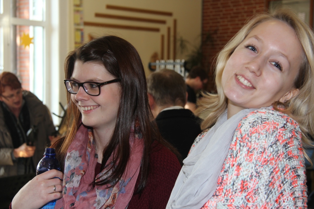 Am nächsten Morgen startete der Tag um 09.30 Uhr. Nach einer kurzen Begrüßung ging es mit den sechs Dozenten direkt bis 12.30 Uhr in die Registerproben. Aufgrund der im Schulzentrum zahlreich zur Verfügung stehenden Räumlichkeiten gab es registerübergreifend keine akustischen Beeinträchtigungen. Auch erwiesen sich die Dozenten als überaus kompetent, verständnisvoll und umgänglich. Kurz gesagt: Die Registerproben machten mit den Dozenten –trotz harter Arbeit- richtig Spaß! Es wurde nicht nur geprobt sondern auch viel gelacht!