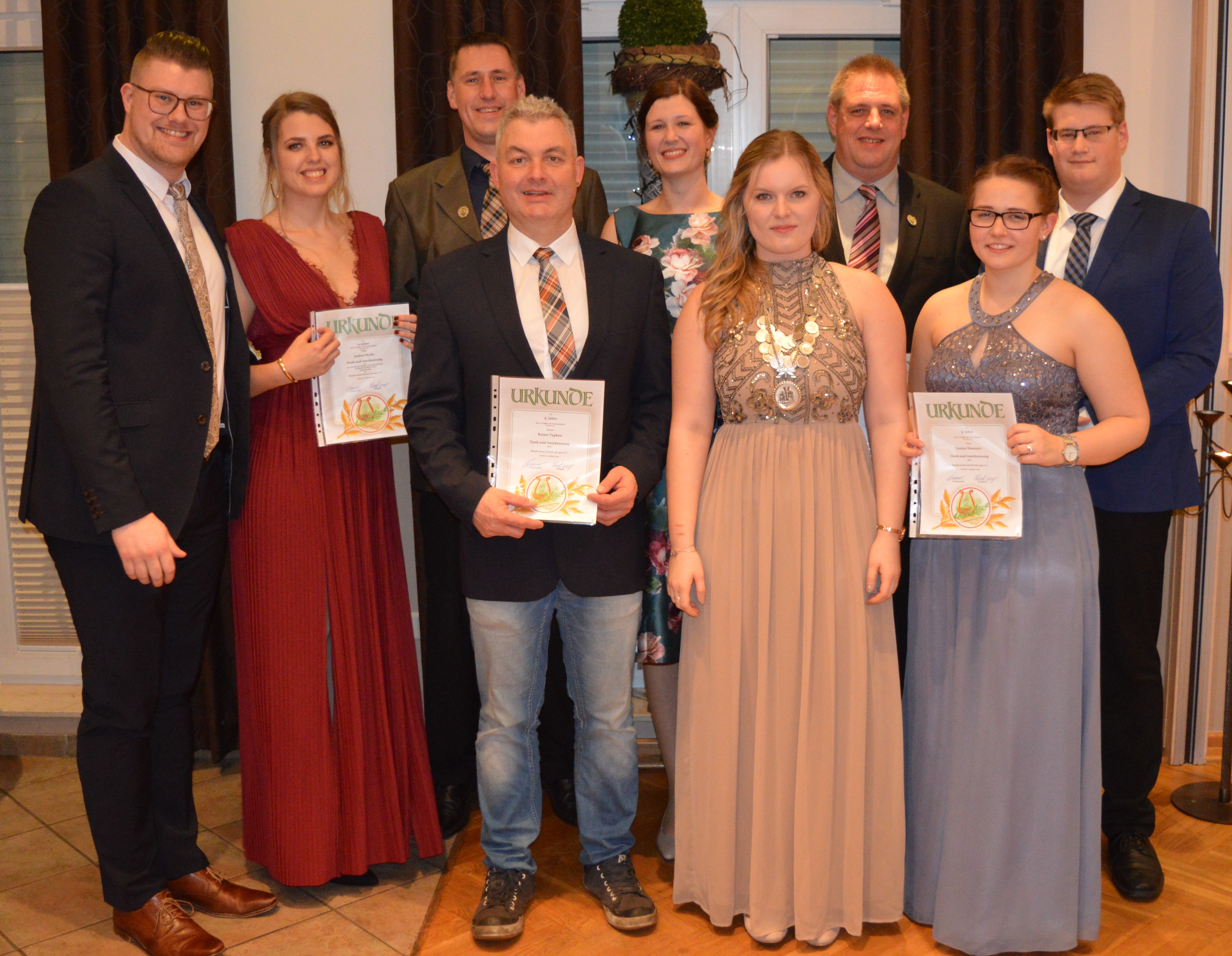 Besonders begrüßt wurde das Ehrenmitglied Mathias Hülskamp sowie der Ehrendirigent Martin Brauner. Außerdem hieß Pascal Brauner die Eltern der jüngeren Vereinsmitglieder, die amtierende Ballkönigin Gabi Renze, die Musikerin des Jahres (Kerstin Sondag) sowie das Register des Jahres (Tuba) herzlich willkommen.